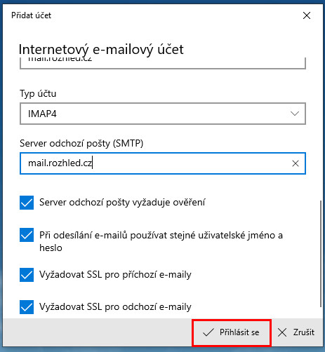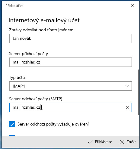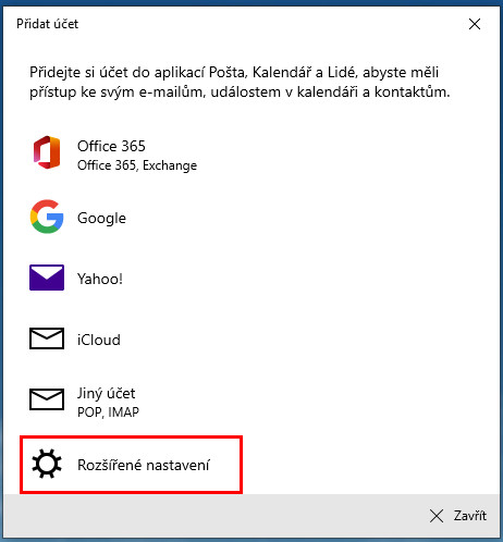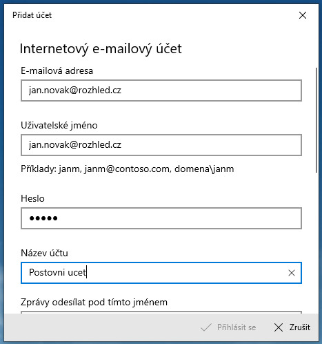 Návod na přidání emailového účtu do aplikace Mail ve Windows 10: