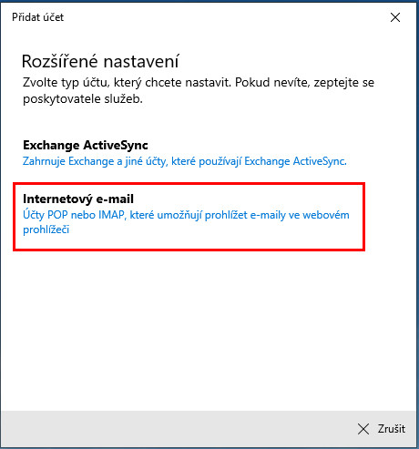 Přidání emailového účtu do aplikace Mail Windows 10